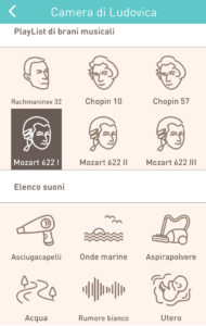 - Melodie e suoni rilassanti: posso decidere mentre dorme se farle ascoltare un po’ di musica o dei suoni per lei tranquillizzanti (e per la maggior parte dei bambini) come ad esempio: il suono dell’utero materno, il rumore bianco, l’asciugacapelli, ecc ecc ..